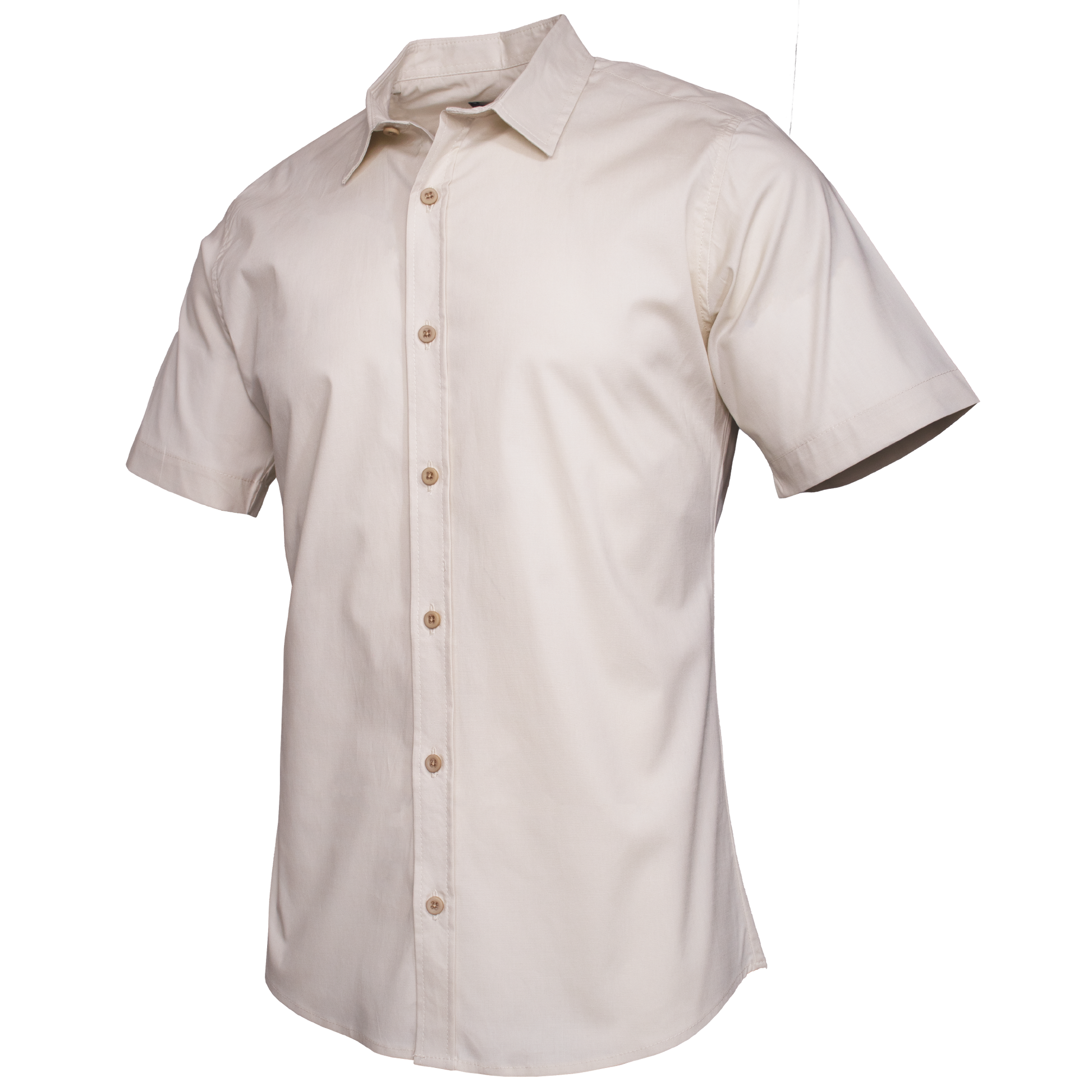 En tono arena perla, esta camisa de manga corta transmite sobriedad y versatilidad en partes iguales. Su cuello clásico, los botones en tono hueso y la silueta slim fit definen una silueta pulida sin verse forzada — úsala con chino beige para una salida casual o con pantalón negro para una noche que exige más. La dobladilla curvo en la parte inferior y el acabado general hablan de una prenda pensada hasta el último detalle.